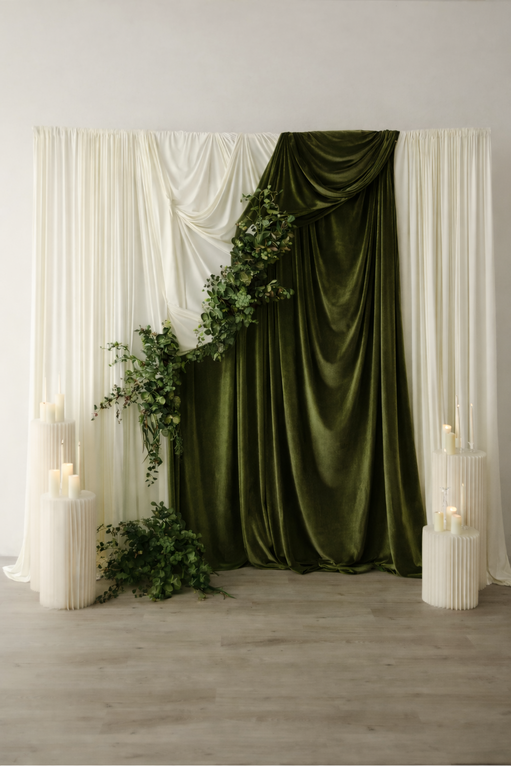 Our draped backdrops are a timeless and elegant statement piece designed to elevate any event. Perfect for weddings, bridal showers, baby showers, birthdays, corporate events, and photo moments, each setup creates a soft, luxurious focal point within your space.