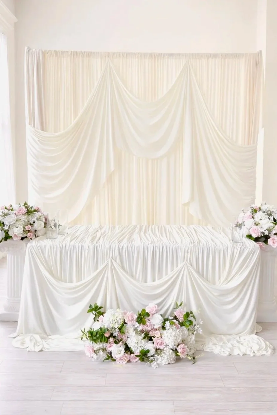Thoughtfully designed draping that frames your ceremony or highlights your sweetheart table, adding depth, texture, and elegance to your space.Cake Table Draping